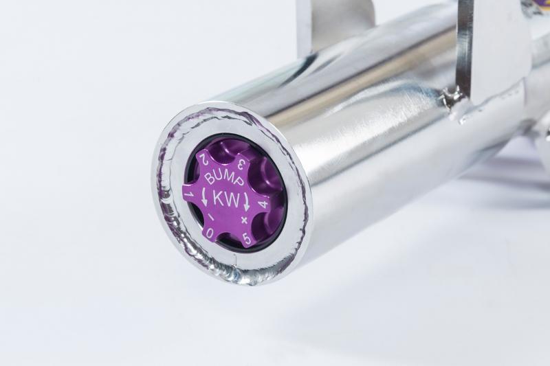 Cutting-edge motorsports technology for more performance on the road. Like every suspension product developed by KW automotive, the suspension manufacturer, and manufactured in Germany, the KW V3 Coilover suspension kit also provides a significant plus in safety reserves in road traffic. Thanks to the chassis with its high-quality dampers, springs, and elastomer spring elements, pitching and rolling movements during load changes such as evasive maneuvers, cornering, acceleration, and braking are significantly reduced. The braking distances are also shortened. Thanks to improved support and feedback, drivers not only feel safer but driving in everyday life becomes even safer. With compression and rebound stage damping, that can be set separately and independently of each other, the damper setup can be customized to your personal driving preferences or vehicle changes such as weight, tire characteristics, or altered vehicle rigidity. True performance optimization is only possible with this unique, patented system. For example, this allows the compression damping force to be increased and get more grip from the tires, to improve cornering behavior and reduce squat without simultaneously altering the rebound stage damping which is optimally matched to the spring rate, a scenario which results in reduced grip and the associated loss of performance. The KW V3 coilover kit is the ideal tool for performance-oriented drivers and experienced tuning enthusiasts who place a strong emphasis on the overall performance of their suspension. The Variant 3 features patented TVR-A and TVC-A technology that provides separately adjustable rebound and compression damping. The extensive adjustment range of the independently configurable rebound and compression make it easy to directly influence the steering behavior, directional stability, grip and handling characteristics for confident and repeatable results at the limit of driving dynamics.